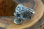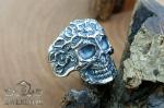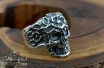 На фото изображёно кольцо из серебра в виде черепа, украшенного цветочным орнаментом имеет уникальный дизайн, который привлекает внимание и вызывает интерес. Оно станет отличным дополнением к вашему стилю и позволит выделиться среди других.